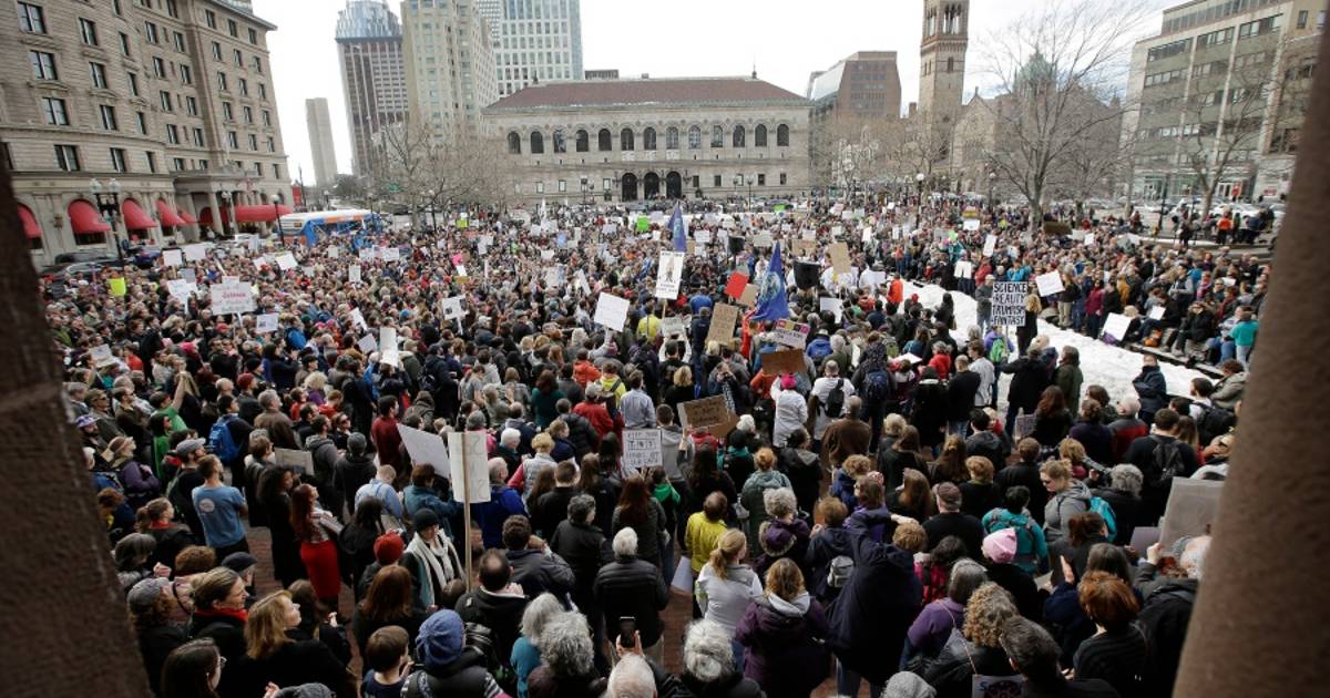 Cientos de científicos, defensores del medio ambiente y sus partidarios realizaron el domingo un mitin en Boston para protestar contra los que califican como una creciente amenaza a la ciencia y a la investigación en Estados Unidos.