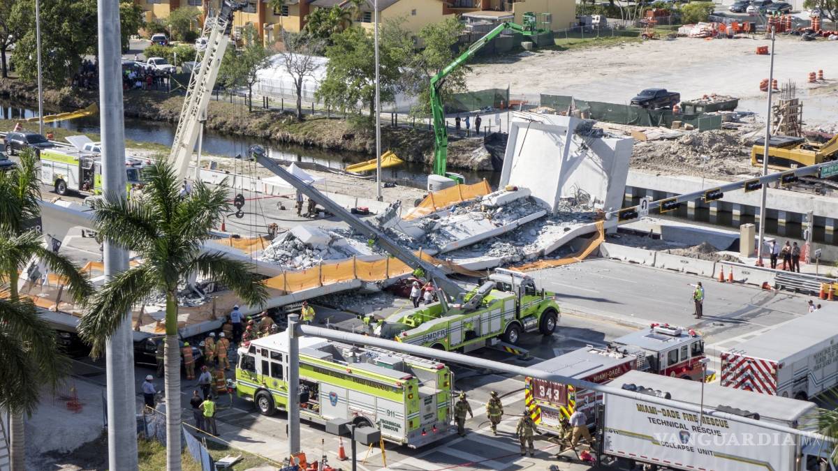 Hasta el momento el derrumbe de un puente peatonal en la calle Ocho de Miami, Florida, ha dejado seis muertos muertos, confirmó la policía local.