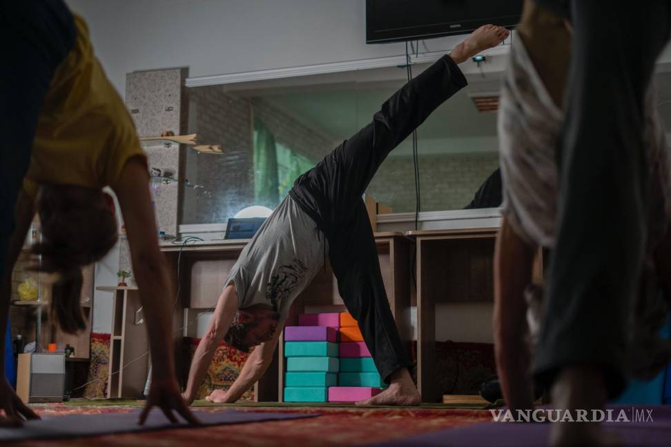 Sin embargo, a los participantes de yoga esto no les molesta. Se dejan guiar por las indicaciones de Zaloznyi, moviendo sus cuerpos de una asana —o posición de yoga— a otra con los ojos cerrados. La iluminación del lugar es tenue, ya que las ventanas están cubiertas con cinta de color con la intención de evitar que el vidrio se haga añicos en caso de un ataque.
