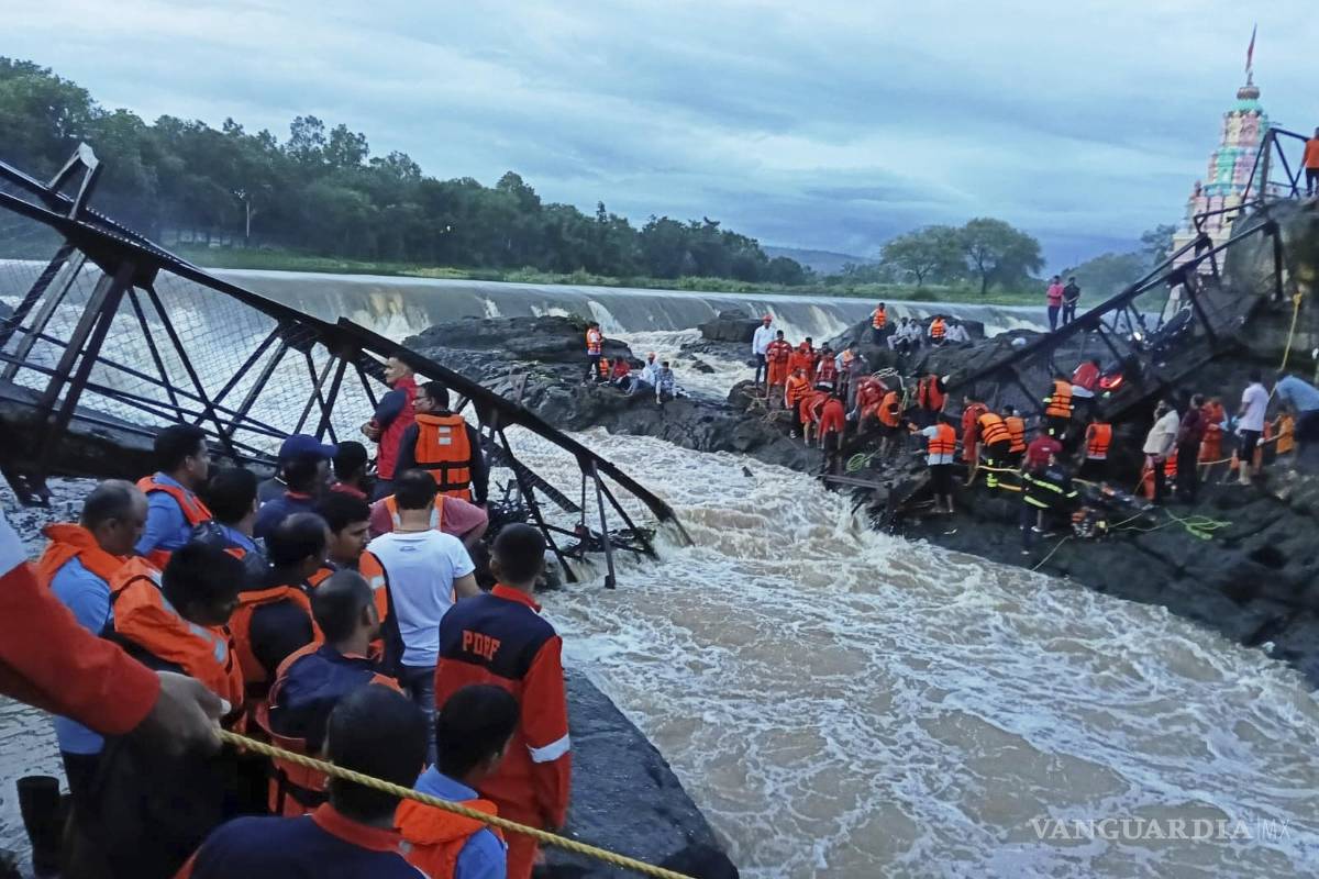 NUEVA DELHI.- Al menos dos personas murieron y 32 más resultaron heridas después de que un puente de hierro sobre un río colapsara el domingo en un popular destino turístico en el estado occidental de Maharashtra, en India, informó el principal funcionario electo del estado.