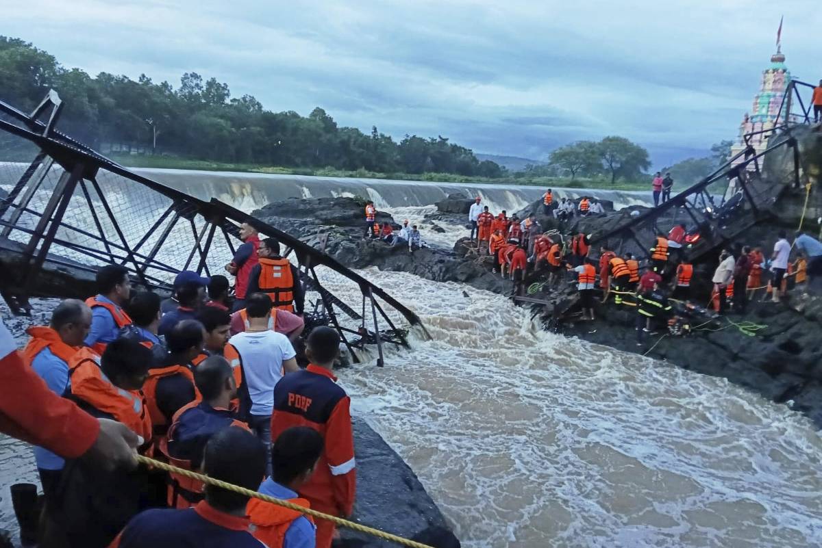 Al menos seis personas fueron hospitalizadas en estado crítico, escribió el ministro principal Devendra Fadnavis en la plataforma de redes sociales X. Los medios locales informaron que decenas de turistas estaban en el puente cuando colapsó, sumergiendo a muchos en el río crecido.