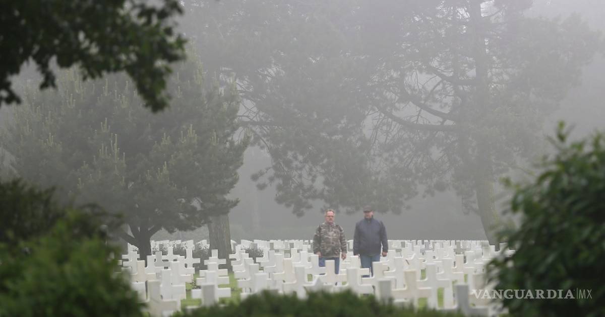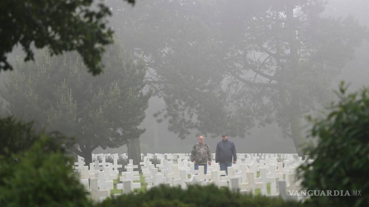 Poderosas ráfagas de viento con una neblina espesa soplaron en la zona francesa mientras los asistentes recordaron a sus parientes sepultados en el cementerio para militares estadounidenses en Colleville-sur-Mer, por encima de una extensión arenosa conocida como Playa Omaha.