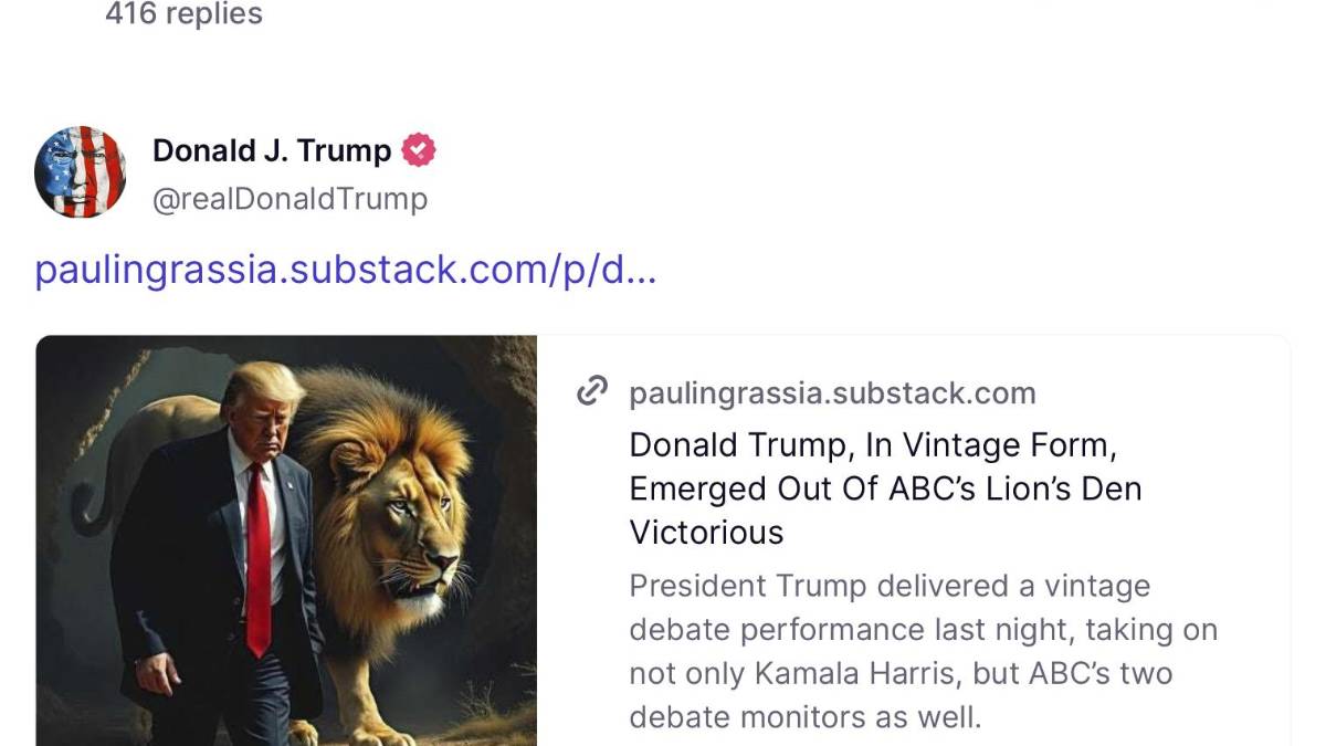Paul Ingrassia, comentarista político y abogado afincado en Nueva York, dijo que creó una imagen viral de Trump que salía de la boca de un lobo en cuestión de segundos mediante Grok, luego la incluyó en su boletín de noticias y la envió al personal de la campaña de Trump. La cuenta Truth Social de Trump publicó el boletín de Ingrassia, incluida la imagen, ese mismo día.