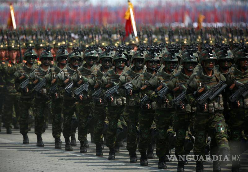 Imágenes de la televisión norcoreana mostraron a miles de soldados marchando en medio de aplausos del público por el centro de la capital norcoreana, acompañados de carros de combate y otros vehículos militares. El líder norcoreano, Kim Jong-un, observó el desfile desde la tribuna.