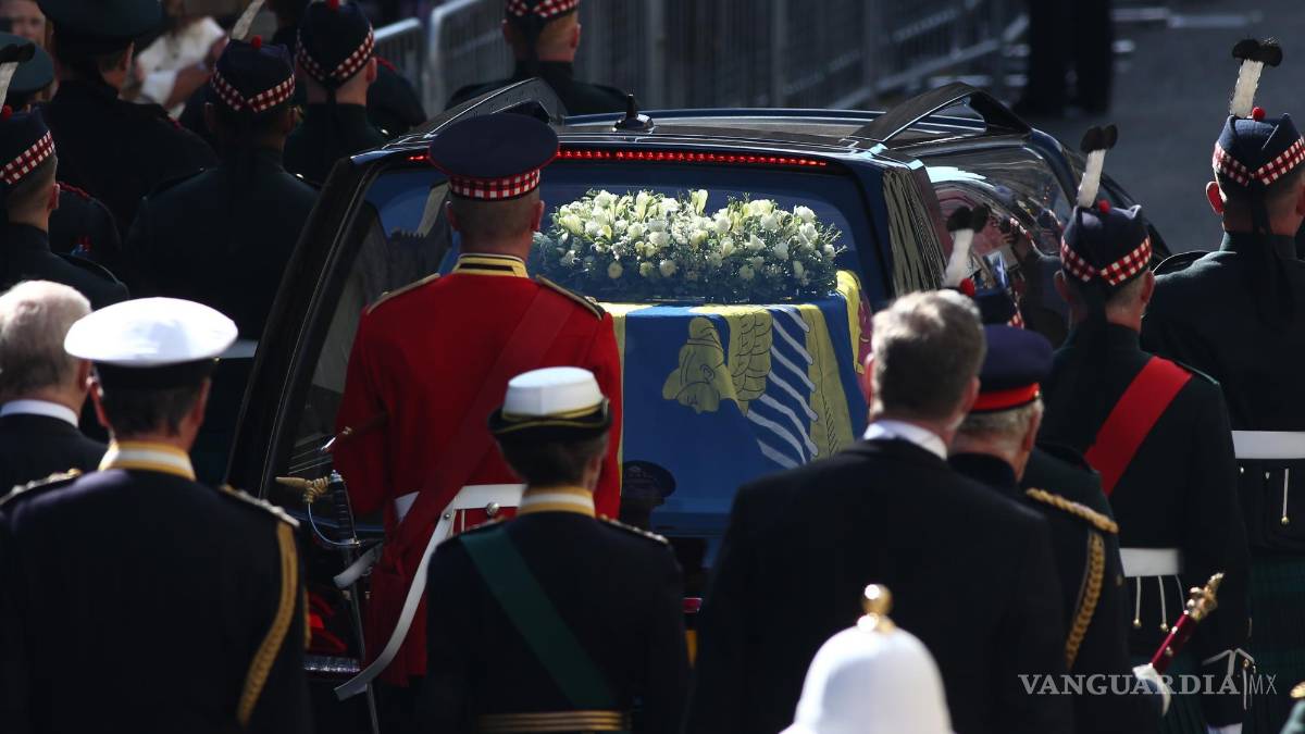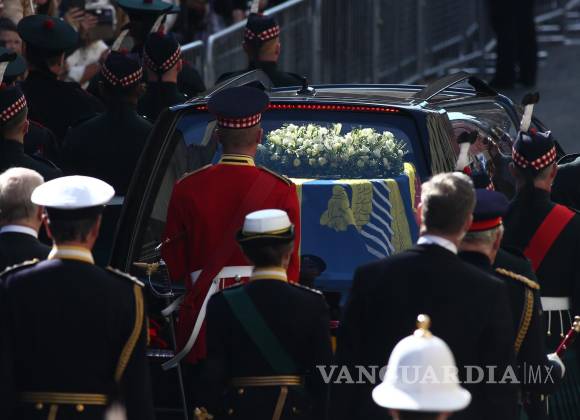 Acompañando y por detrás del féretro, que estaba cubierto con el estandarte real de Escocia y una corona de flores, iban a pie el rey Carlos III, la princesa Ana; el duque de York, Andrés, y el conde de Wessex, Eduardo, los cuatro hijos de Isabel II y el duque de Edimburgo, en una ceremonia envuelta en un respetuoso silencio de la gente congregada en el lugar.
