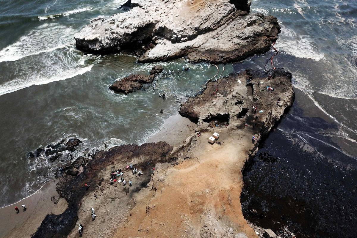 LIMA, PRU.- Perú declaró este sábado “emergencia ambiental” por 90 días a la zona costera dañada por el derrame de 6 mil barriles de crudo hace una semana en medio del oleaje causado al parecer por una erupción volcánica en Tonga.