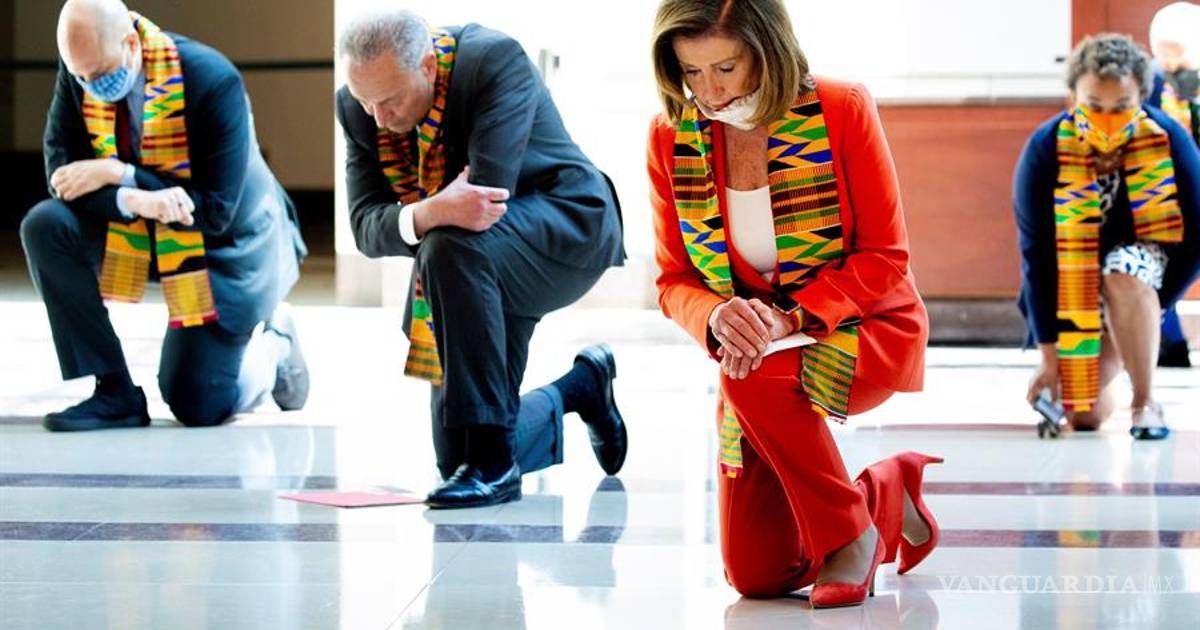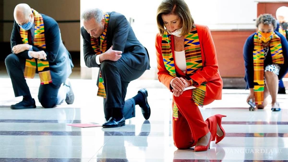 La presidenta de la Cámara de Representantes, la demócrata Nancy Pelosi, lideró a una decena de legisladores demócratas se arrodillaron durante 8 minutos y 46 segundos, el tiempo que un policía mantuvo su rodilla sobre el cuello de George Floyd.