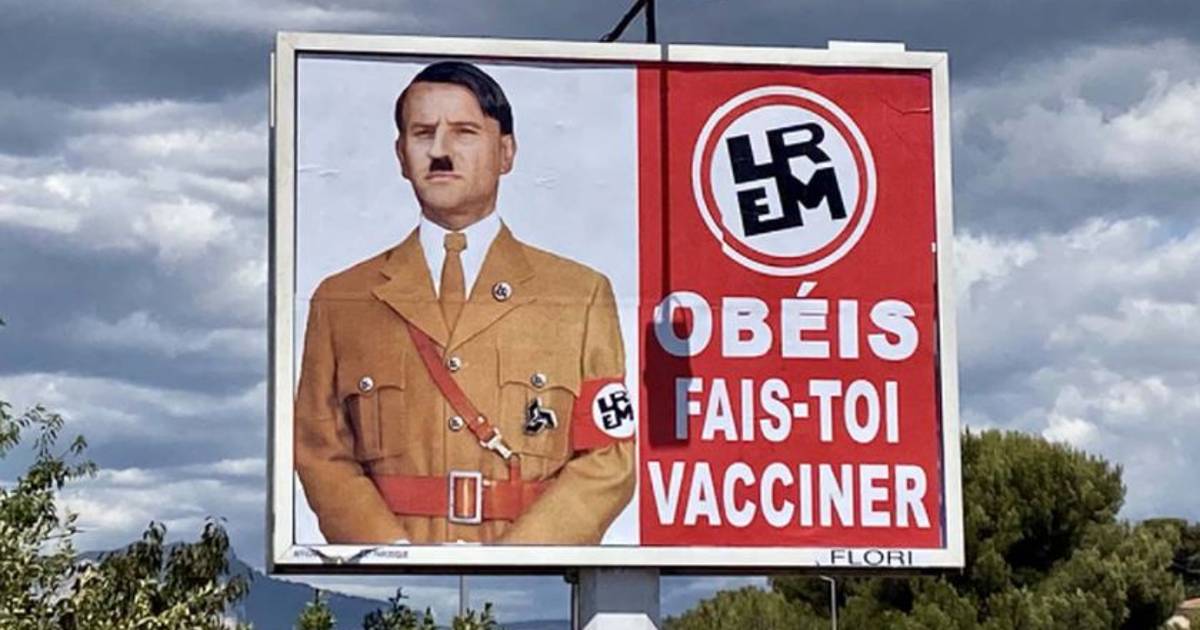 Los carteles aparecieron en las localidades de Seyn-sur-Mer y Tolón, en el sureste del país hace una semana. En los mismos, Macron aparece disfrazado de Hitler con un brazalete en su brazo en el que la cruz gamada ha sido sustituida por las siglas de su partido LREM (La República En Marcha).