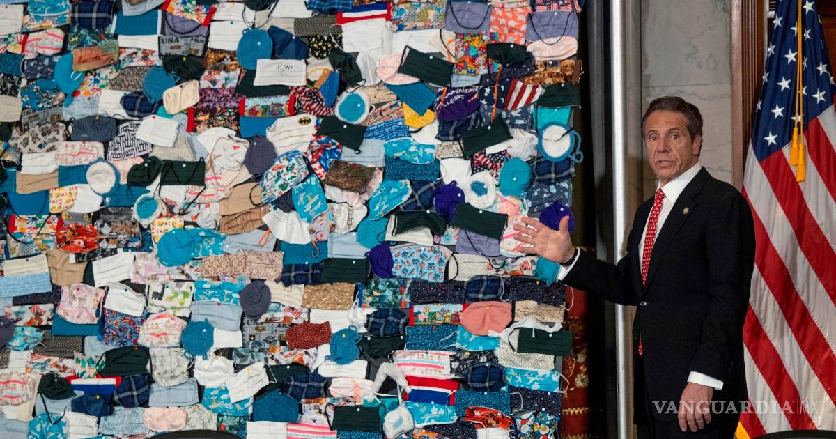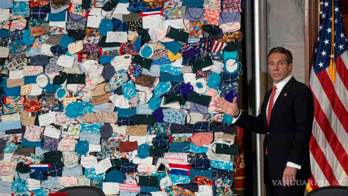 NUEVA YORK, EU.- El gobernador demócrata de Nueva York, Andrew Cuomo, presentó un “collage” hecho con cientos de mascarillas de todo tipo que bautizó como “Un retrato de EU” y que utilizó para cargar contra políticos del Partido Republicano, a los que acusó de estar “envenenando” el país con la politización de la pandemia.