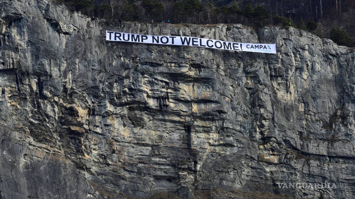 Un grupo de escaladores desplegó hoy una gigantesca pancarta con el mensaje "Trump no eres bienvenido" en lo más alto de la pared de una montaña en la localidad de Sargans (cantón suizo de San Galen), coincidiendo con la llegada del presidente estadounidense al Foro Económico Mundial de Davos.
