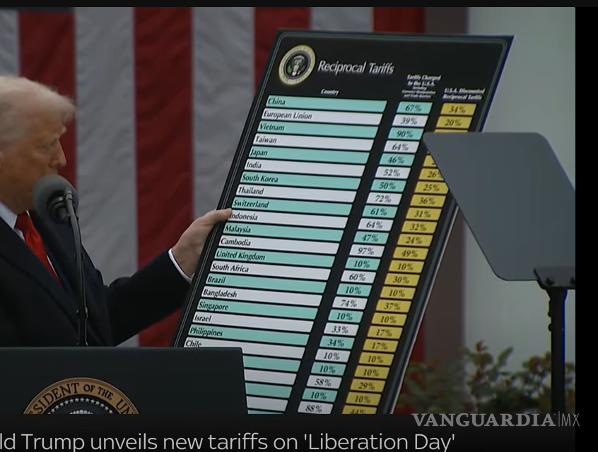 El mandatario mostró una tabla en la que se muestran los porcentajes designados en los impuestos arancelarios correspondientes a cada nación.