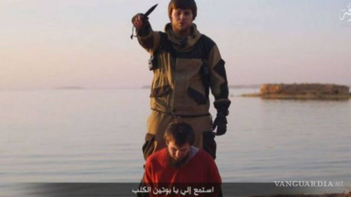 En la segunda parte del video, que dura más de siete minutos y está publicado por la oficina de los extremistas en Al Raqa (noreste de Siria), se ve al prisionero que va a ser decapitado de rodillas y de espaldas a un combatiente del EI en un lugar al aire libre.