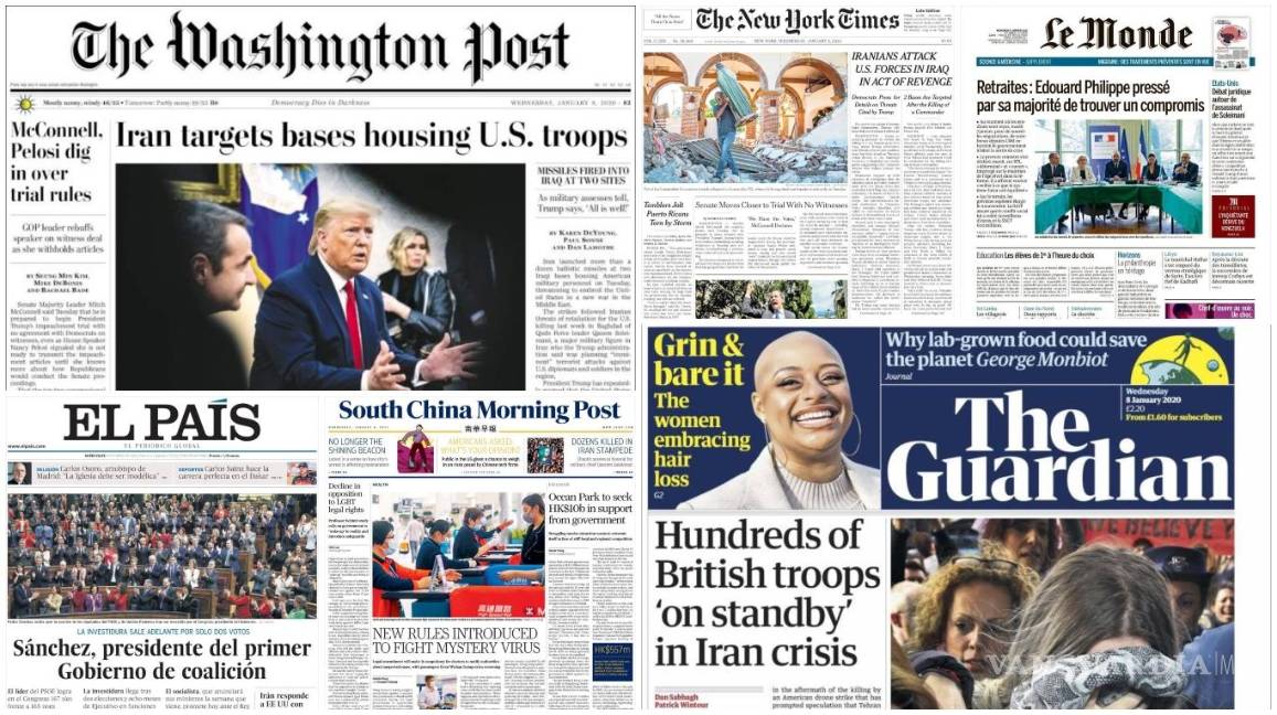 El ataque de Irán a bases militares de EU en Irak acaparó las portadas de los principales diarios del mundo