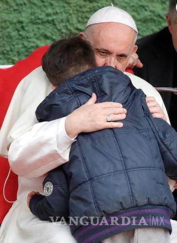 El Papa luego envolvió al niño en un fuerte abrazo cuando finalmente se acercó a Francisco en el escenario.