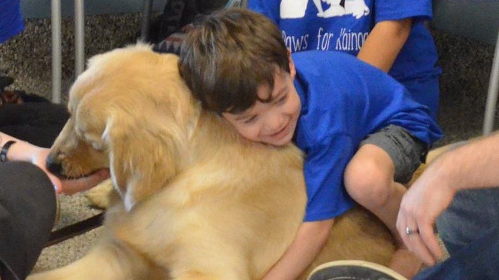 Tiene 5 años y después de pasar dos esperando por un perro de compañía, viajó a Ohio, Estados Unidos, para para conocer a Tornado, el animal que se le asignó.