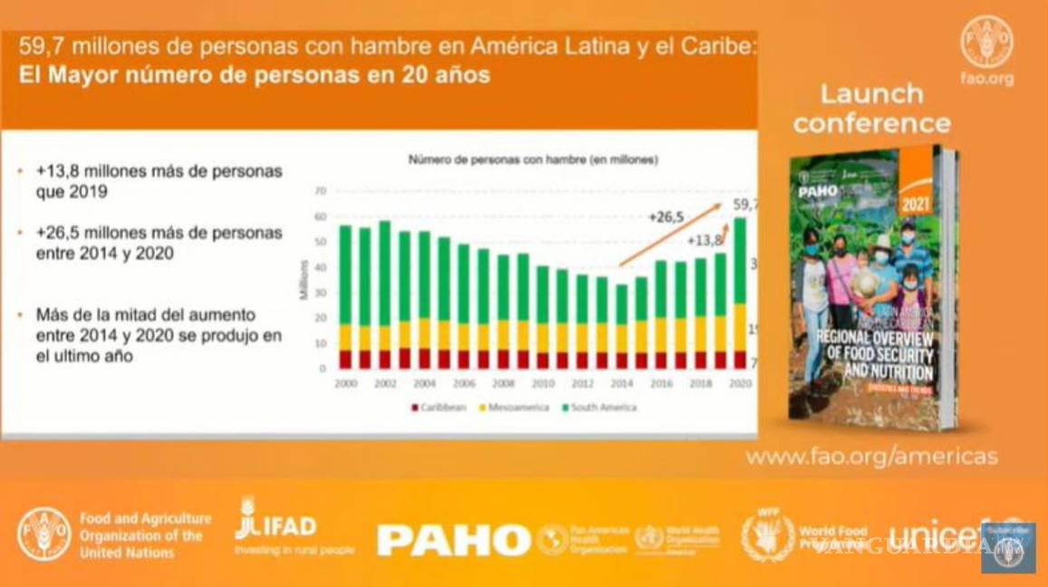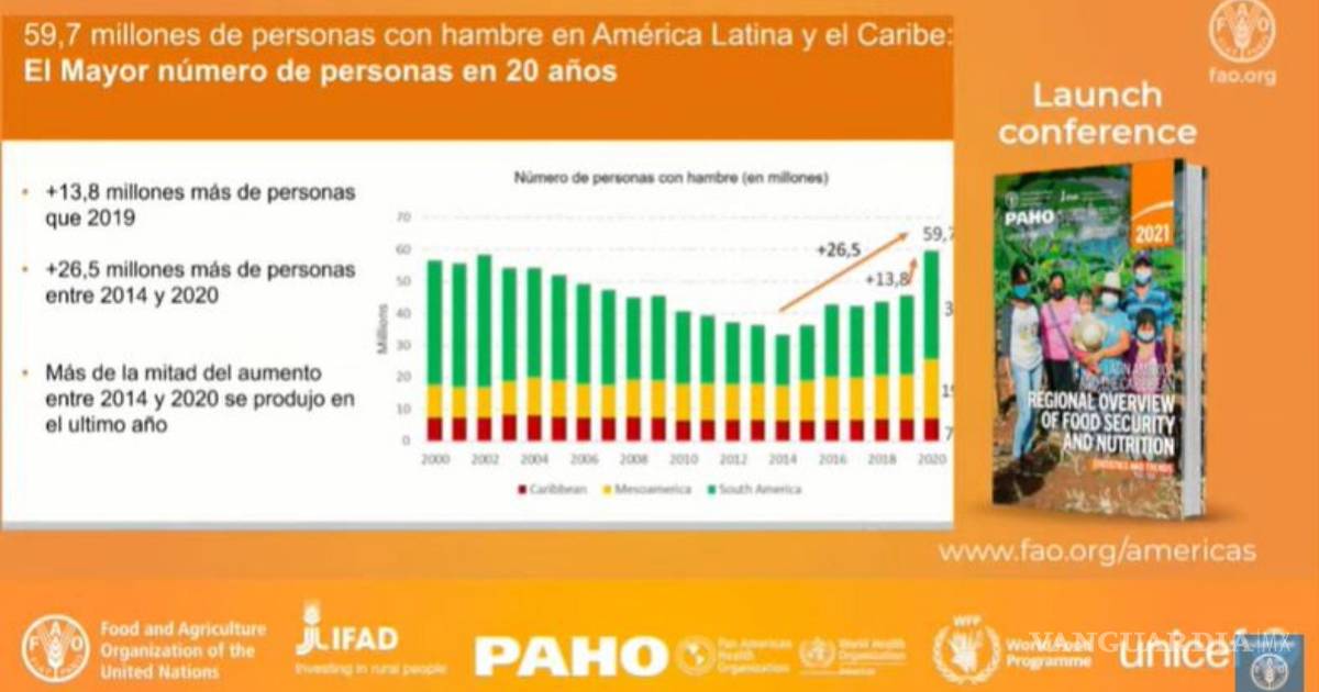 Las cifras forman parte del informe “Panorama de la seguridad alimentaria y nutricional en América Latina y el Caribe 2021”, elaborado junto al Fondo Internacional de Desarrollo Agrícola (FIDA), el Programa Mundial de Alimentos (WFP) y el Fondo de las Naciones Unidas para la Infancia (Unicef).