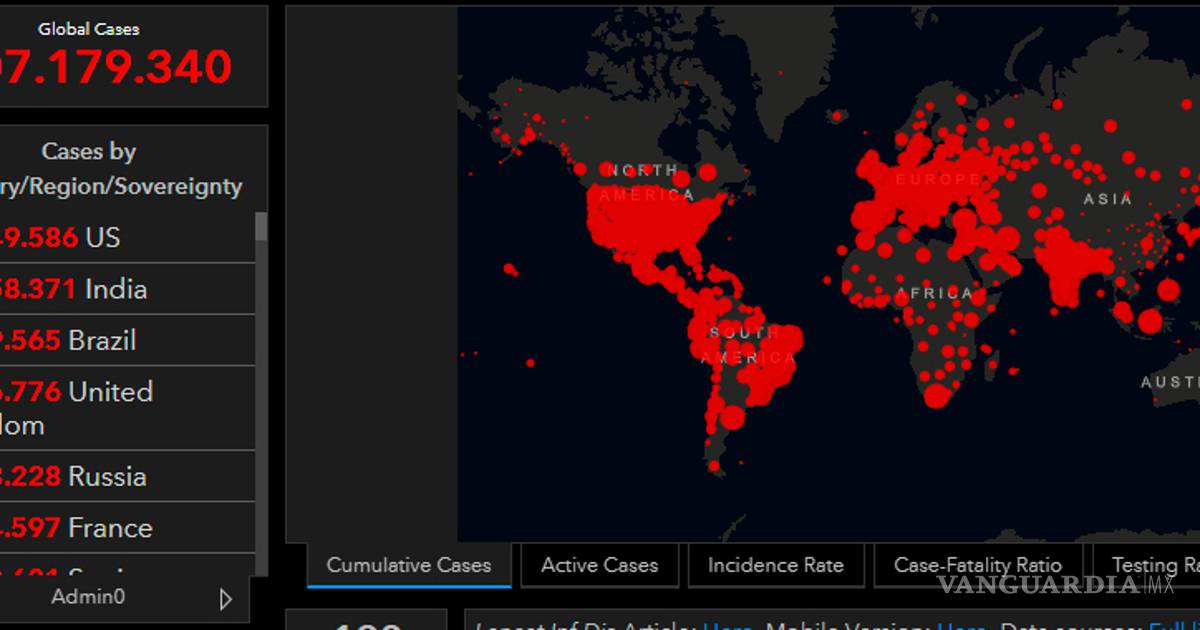 De acuerdo con el último reporte del mapa de la Universidad Johns Hopkins, en las últimas 24 horas se reportaron 304 mil nuevos casos.