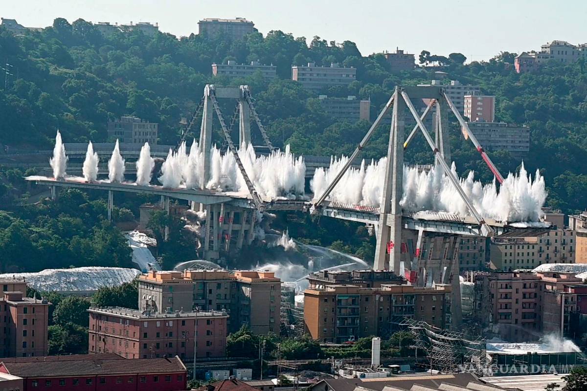 Los dos pilares que quedaban aún en pie del puente Morandi de Génova (noroeste de Italia), que en agosto de 2018 se derrumbó en parte causando la muerte de 43 personas, fueron demolidos hoy de manera controlada con una espectacular explosión en la que se utilizó cerca de una tonelada de dinamita, informaron las autoridades.