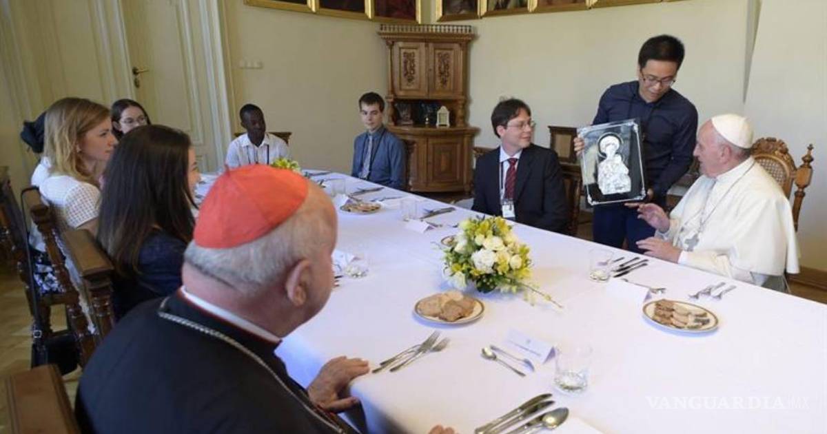 En comida íntima el Papa bromea y conversa con jóvenes del mundo