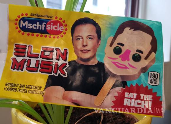 Tras saborear el helado de Musk, que según el envoltorio aporta 190 calorías, en el palo se puede leer “Elon Musk tiene un capital neto de 264.600 millones de dólares” y en el reverso, una vez más: “Cómete a los ricos”.