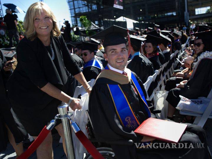 CALIFORNIA.- Una universidad en California confirió un diploma honorario a la madre de un estudiante tetrapléjico que asistió con él a todas sus clases y le ayudó a tomar notas cuando él estudiaba para su maestría en Administración de Negocios.