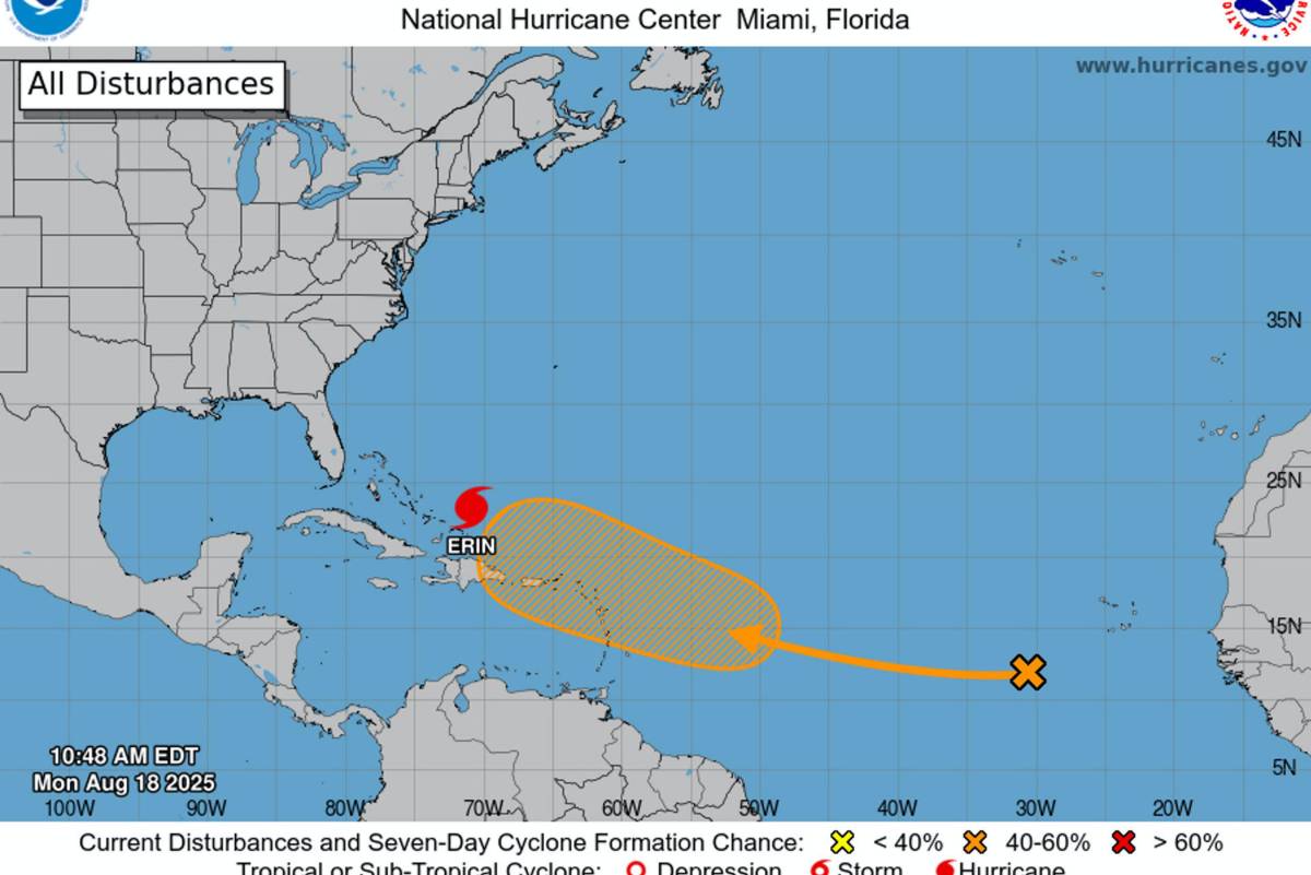 MIAMI- Se prevé que Erin va a provocar un oleaje peligroso y corrientes de resaca, es decir, corrientes de agua canalizada que se moverán desde la orilla de la playa hacia mar adentro, a lo largo de la costa este estadounidense este fin de semana.