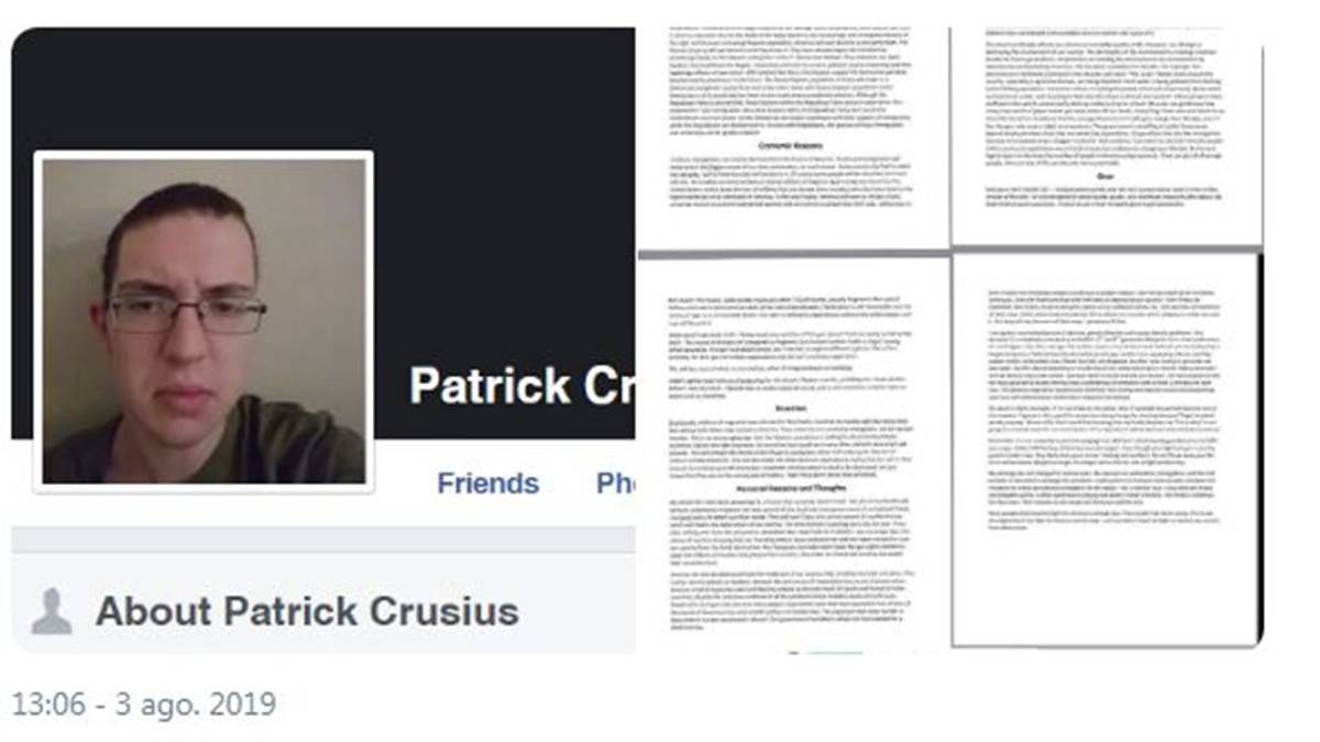 “En general, apoyo al tirador de Christchurch y su manifiesto. Este ataque es una respuesta a la invasión hispana de Texas. Ellos son los instigadores, no yo. Simplemente estoy defendiendo a mi país del reemplazo cultural y étnico provocado por una invasión”, explica presuntamente Crusius en un manifiesto.