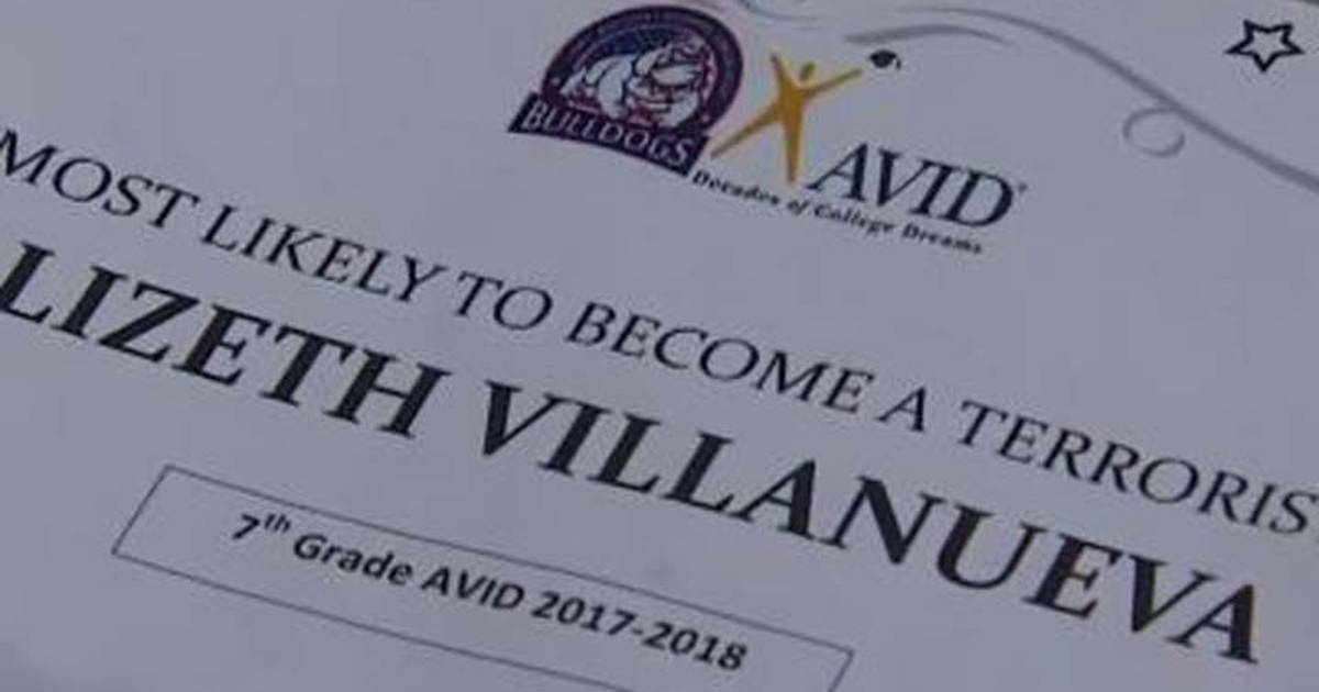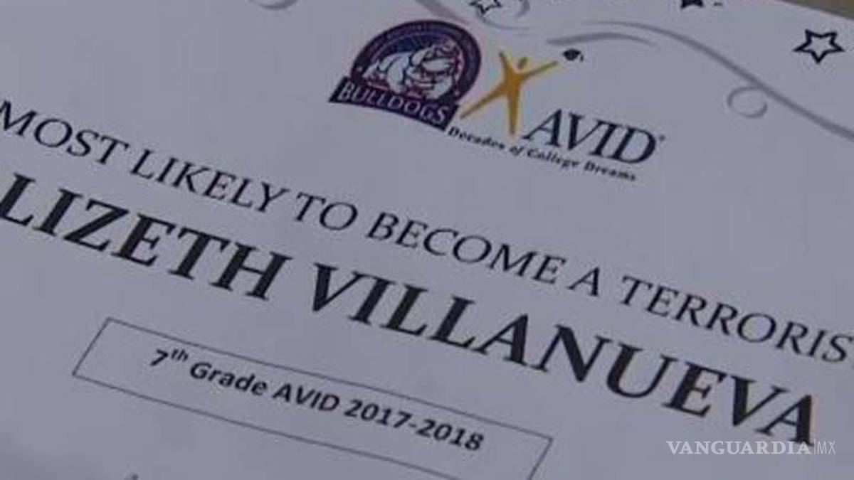 Lizeth Villanueva de 13 años y estudiante del Anthony Aguirre Junior High en Houston, recibió un diploma de ‘broma’ al finalizar el ciclo escolar, aunque fue elegida como ‘la más problable en convertirse en terrorista’.