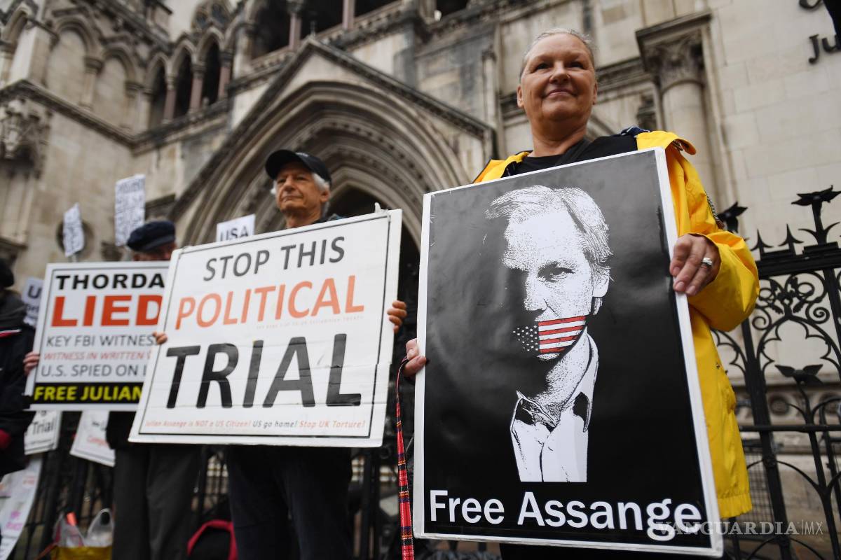 Varias decenas de partidarios de Assange protestaron ante la Corte Real de Justicia de Londres antes de la audiencia, con una duración programada de dos días.