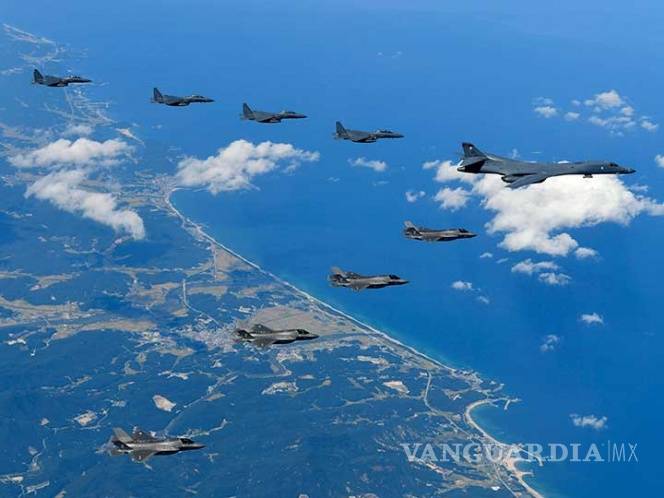Cuatro cazas F-35B y dos bombarderos estratégicos B-1B estadunidenses realizaron hoy un simulacro de bombardeo cerca de Corea del Norte en respuesta al lanzamiento de un misil de alcance medio realizado el pasado viernes por el régimen de Pyongyang.
