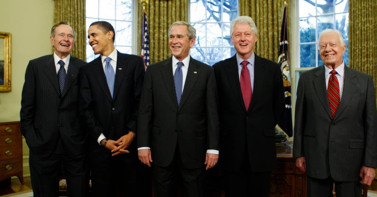 Jimmy Carter (1977-1981), George H. W. Bush (1989-1993), Bill Clinton (1993-2001), George W. Bush (2001-2009) y Barack Obama (2009-2017) aparecen en un vídeo que se estrenó durante la inauguración de la Liga Nacional de Fútbol (NFL).