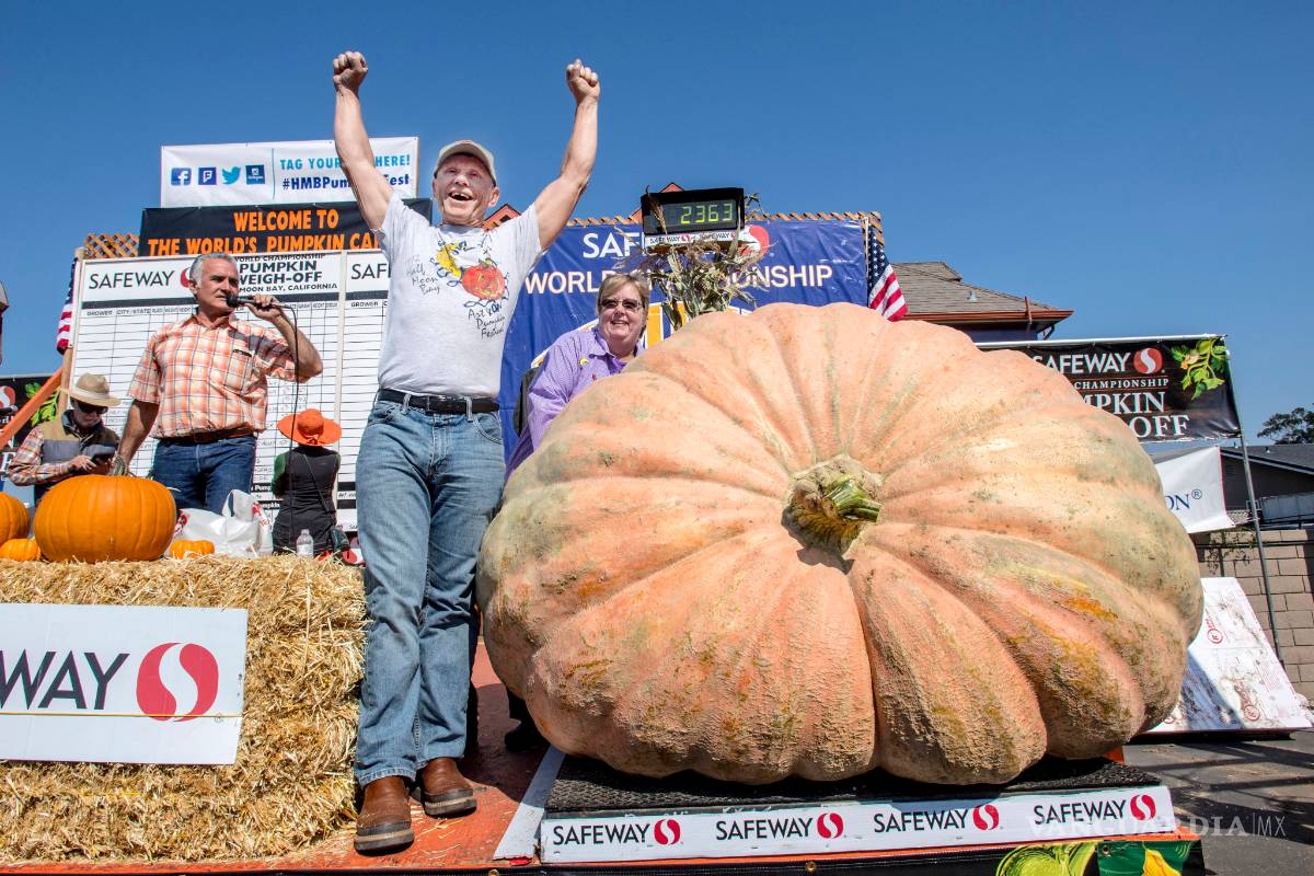 La gigantesca calabaza, que pesa 1,071.8 kilos, es la mayor jamás registrada en Norteamérica. La cultivó cerca de Seattle el bombero Joel Holland, que hace dos semanas ganó por séptima vez la competición anual de calabazas de California. Su récord le valió un premio de 16,500 dólares.