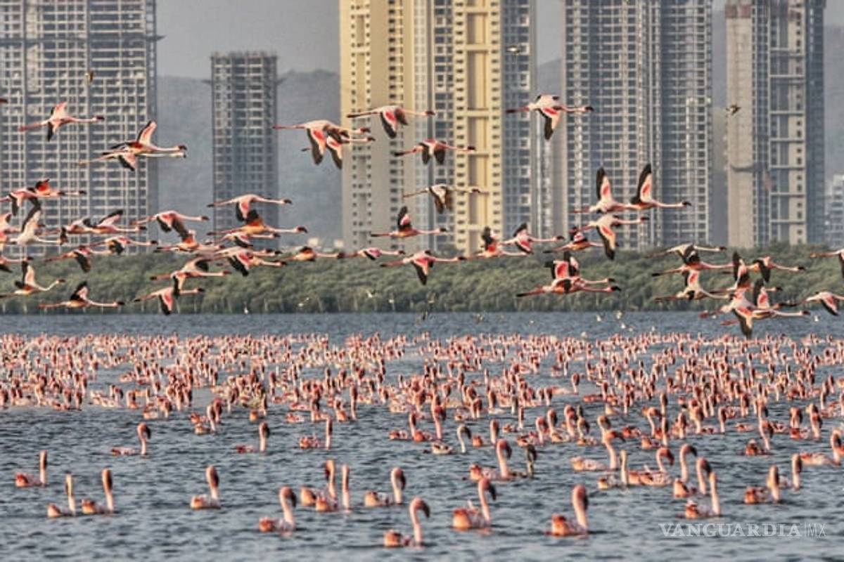 El más reciente caso fue en la India, donde las aguas de Bombay se tiñeron de rosa ante la llegada de miles de flamingos a sus aguas.