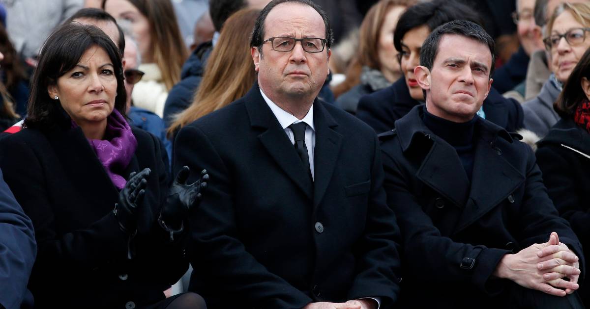 En silencio, sin leer un discurso, el presidente francés, acompañado de la alcaldesa de París, Anne Hidalgo y del primer ministro galo, Manuel Valls, develaron una placa en el suelo de la plaza en presencia de apenas un millar de asistentes.