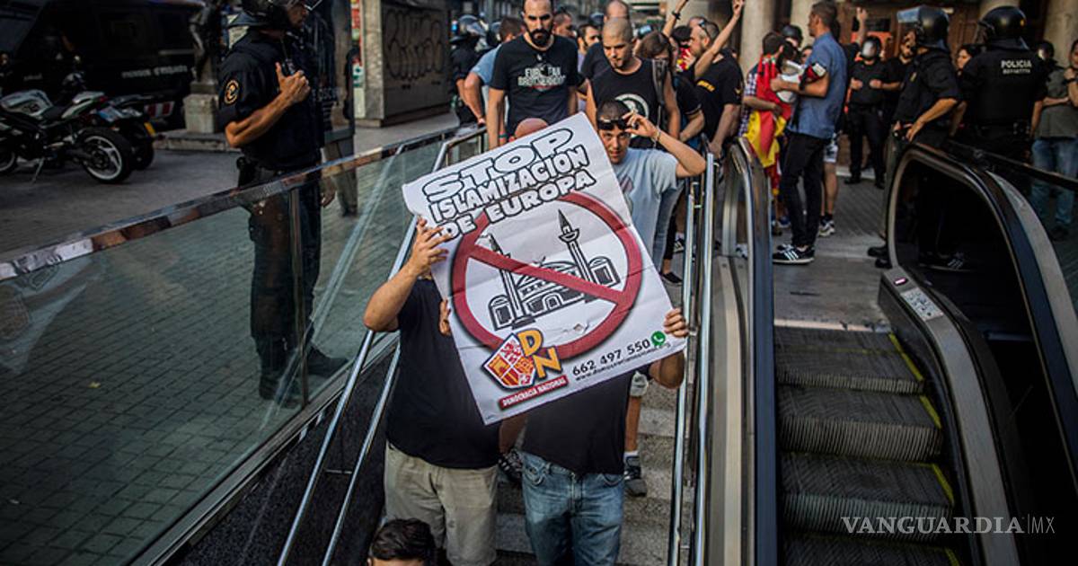 Los manifestantes, convocados por grupos de ultraderecha como Falange, Democracia Nacional, Plataforma per Catalunya, Generación Identitaria o Somatemps, se reunieron en Las Ramblas, la céntrica calle donde se produjo el atentado, con banderas fascistas y carteles con lemas como islamófobos.