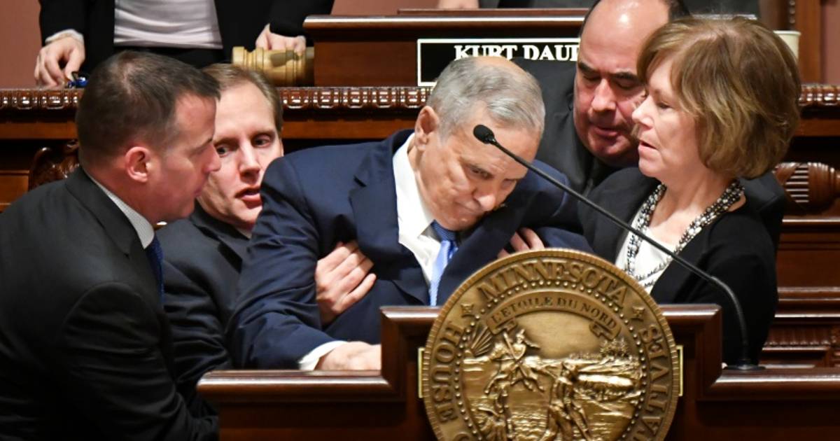 El gobernador se desmayó cuando exponía el alegato inicial en una batalla inminente con los republicanos en torno a una propuesta de sistema optativo de salud pública para todos los habitantes de Minnesota.