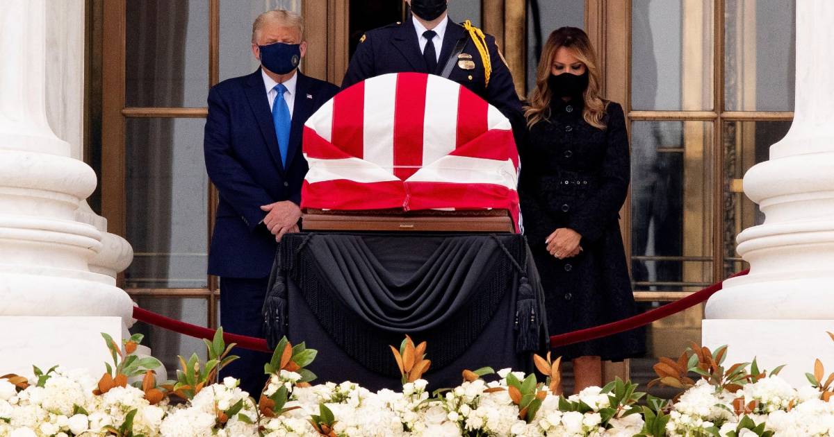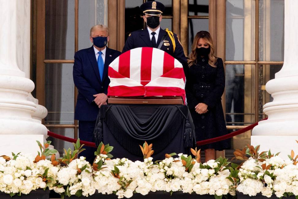 Trump y su esposa Melania hicieron una fugaz visita a la sede del máximo tribunal, en cuya escalinata se encuentra el ferétro de la célebre jueza