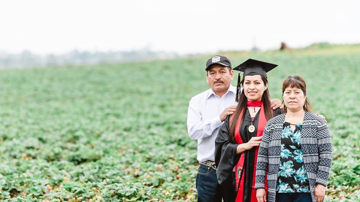 Estados Unidos.- Una joven universitaria hija de padres migrantes decidió celebrar su graduación y agradecer el apoyo recibido por ellos con una sesión de fotos en los campos de tomate del Valle Central de California.