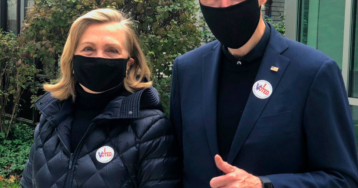 La exsecretaria de Estado, Hillary Clinton, y su esposo, el expresidente Bill Clinton, emitieron su voto por el exvicepresidente de Estados Unidos y candidato presidencial demócrata, Joe Biden y Kamala Harris.