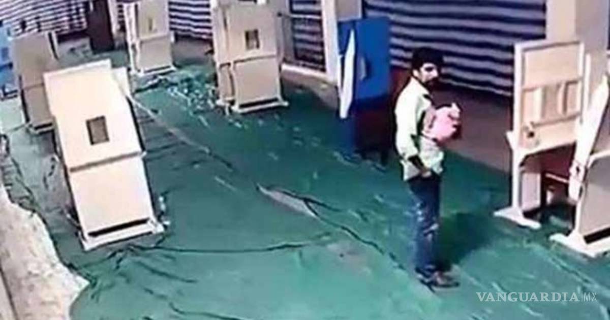 Cámaras de seguridad de la iglesia de St. George Forane captaron el momento en el que el padre le da un último beso a su hijo de 3 días de nacido antes de dejarlo en el lugar.