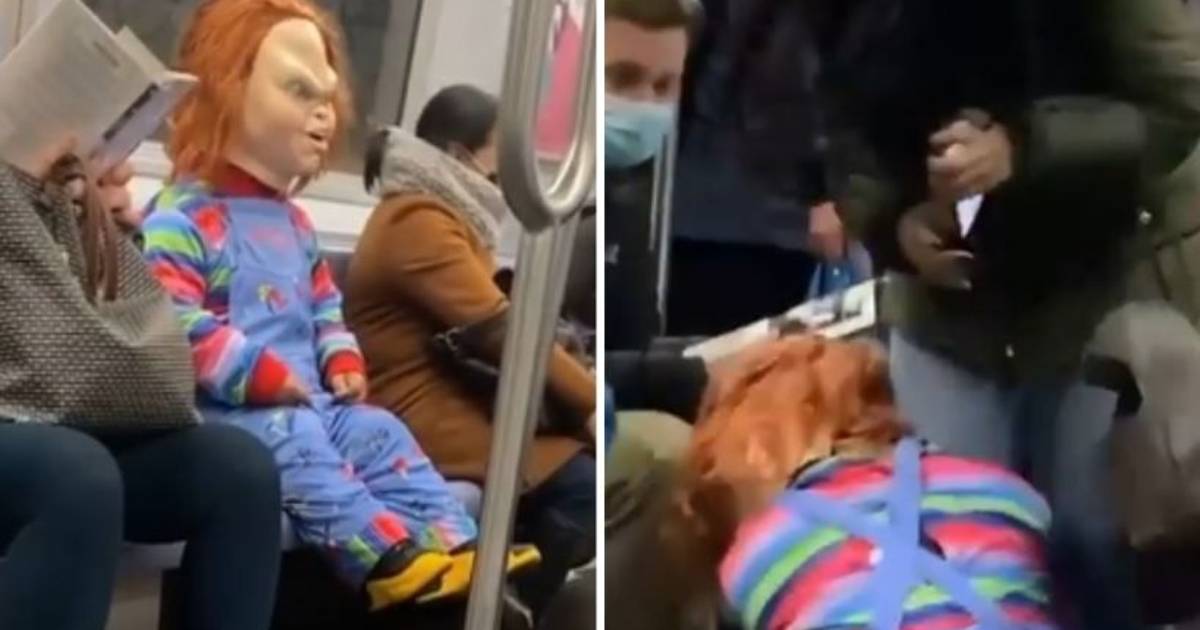 Un hombre con disfraz del tenebroso Chucky, El Muñeco diabólico decidió salir a asustar a quienes no usan cubrebocas durante la pandemia en lugares públicos de la ciudad de Nueva York, a manera de experimento social para grabar la reacción de quienes le rodean.