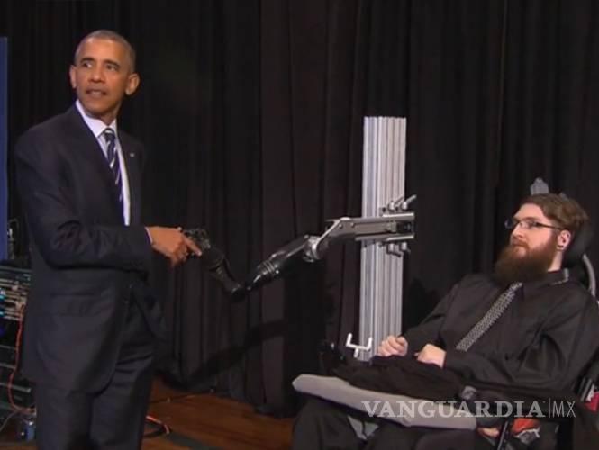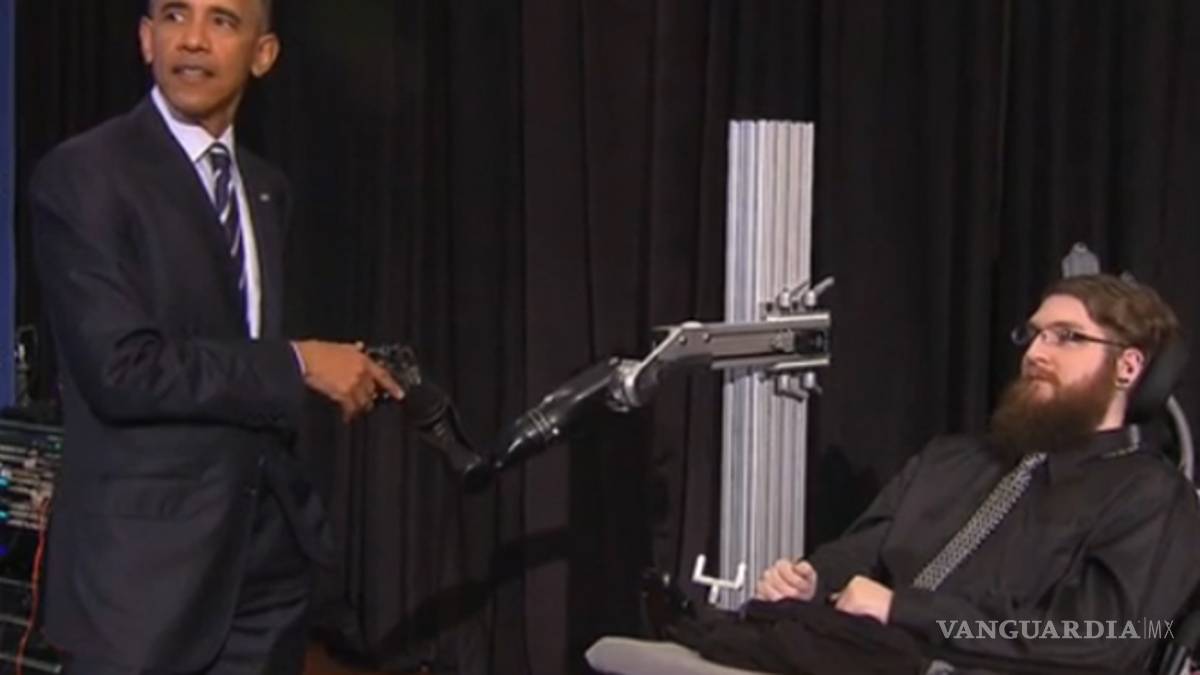 Hombre paralítico logra saludar a Obama gracias a mano robótica