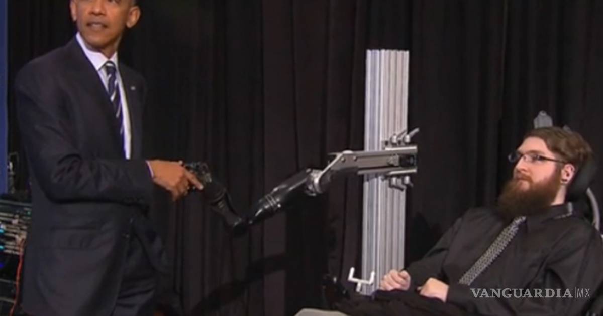 "Veamos qué tienen aquí. ¡Wow! Esto es increíble, Nathan está moviendo su mano con su cerebro, así que cuando chocamos puños y me dio la mano, todo son señales que él está enviando que logran manipular esta mano robótica. Es un procedimiento realmente asombroso, pero también lo que es increíble es que cuando yo muevo la mano robótica, también envía señales a Nathan, entonces él puede sentir lo que le hago a la mano del robot’, explicó el presidente a los medios que estaban presentes.