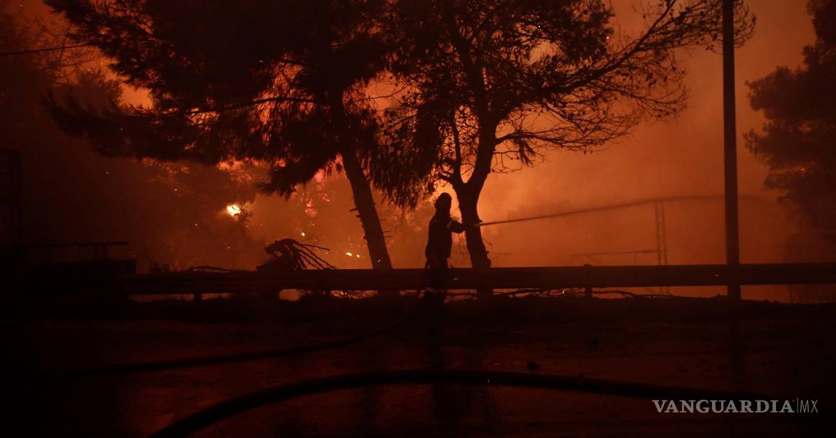 Los bomberos batallaban en medio de un intenso calor para tratar de contener un incendio forestal en las afueras de Atenas que dañó varias viviendas, provocó la evacuación de miles de personas y amenaza a un antiguo palacio real.