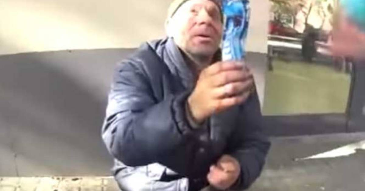 Y una ves realizado el cambio, salió a la calle, se acercó a un indigente, quien agradeció el gesto, sin saber, que sería el protagonista del guión de un tipo que lo que buscaba era ganar más likes y seguidores.