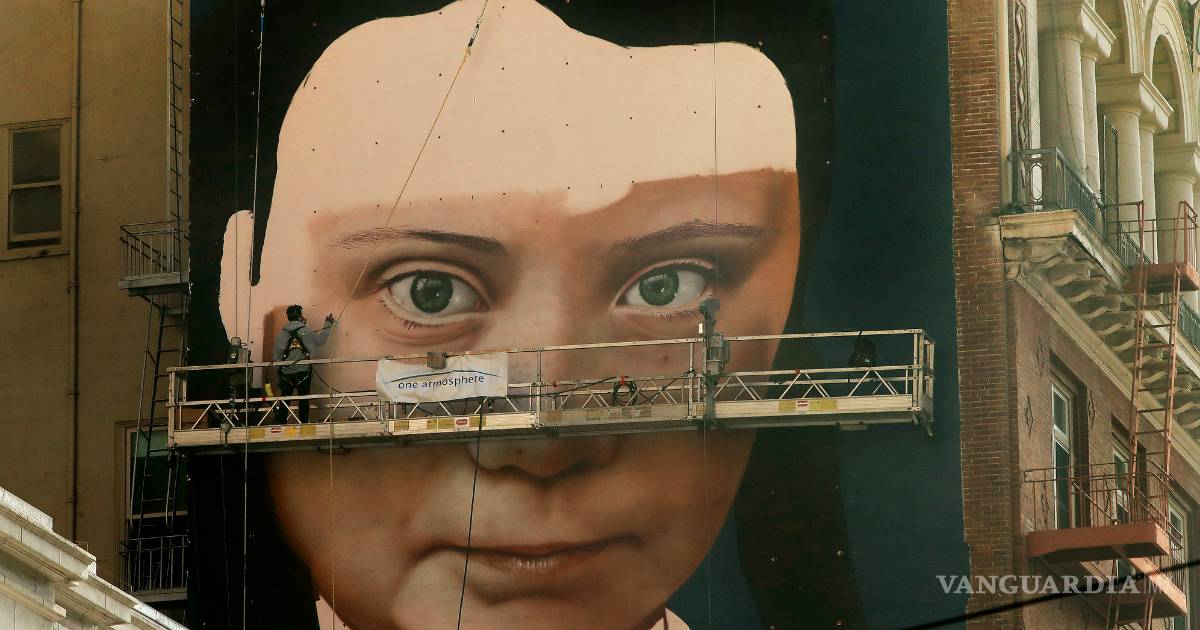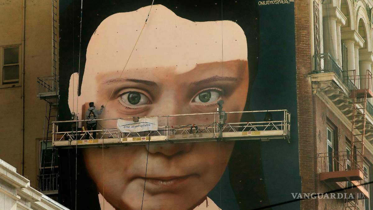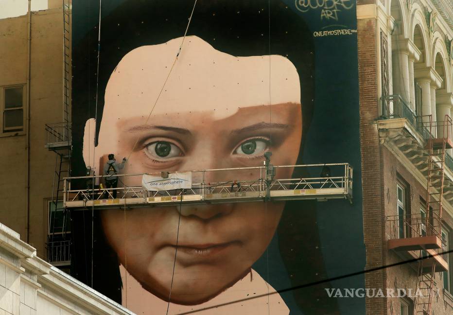 El artista argentino Andrés "Cobre" Iglesias empezó a pintar un mural gigantesco con la cara de la mediática activista sueca contra la crisis climática Greta Thunberg en la pared de un edificio en el centro de San Francisco, desde donde dirige la mirada a los transeúntes.
