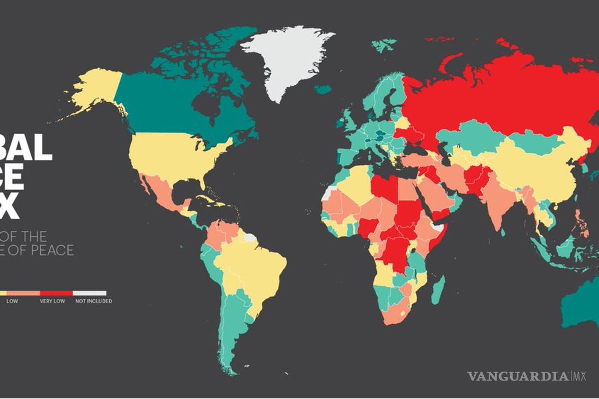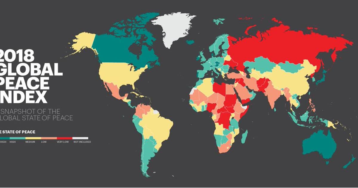 Después de Islandia, que ocupa el primer lugar del GPI desde 2008, los países más pacíficos son Nueva Zelanda, Austria, Portugal y Dinamarca, y los menos son Afganistán, Sudán del Sur, Irak y Somalia, y, finalmente, Siria.