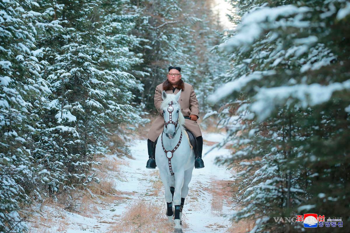 Las fotografías muestran a Kim, con gafas y ataviado con un largo abrigo de color marrón claro, montando a caballo por el paisaje nevado del monte Paektu. La montaña, el punto más alto de la Península de Corea, es sagrada para los norcoreanos. Tanto el monte como el caballo blanco son símbolos asociados con el gobierno dinástico de la familia Kim.