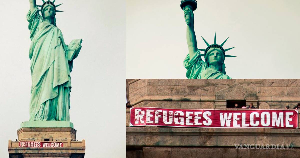 El día de ayer empezaron a circular en Twitter distintas imágenes en donde se puede apreciar una manta con la leyenda "Refugees Welcome" (Bienvenidos refugiados) sobre la estatua de la Libertad; la cuenta @AltLadyLiberty fue la primera en difundir las fotografÍas.