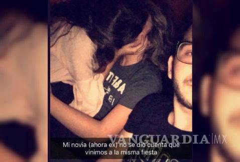 Hasta aquí podría ser una foto normal en una fiesta, de no ser por el texto con el que acompañó la imagen “Mi novia (ahora ex) no se dio cuenta que vinimos a la misma fiesta”.